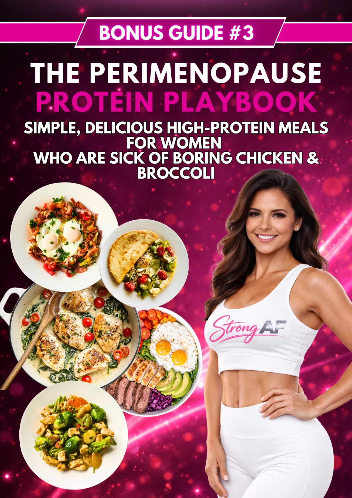 – Simple, delicious high-protein meal ideas and templates specifically designed for women who are sick of boring chicken and broccoli. Includes quick prep strategies for women with zero time.